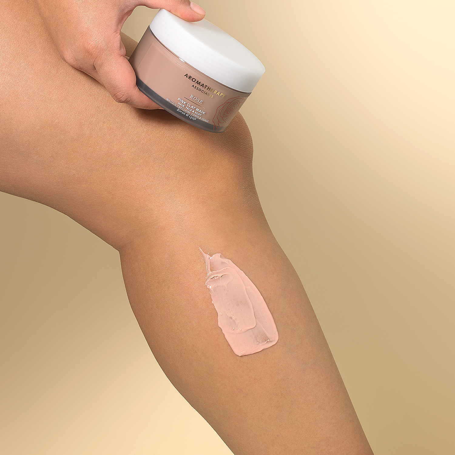 スパ体験ができるヘア、ボディ、フェイスのための贅沢なローズのクレイマスク。髪のプレケアマスクにも。