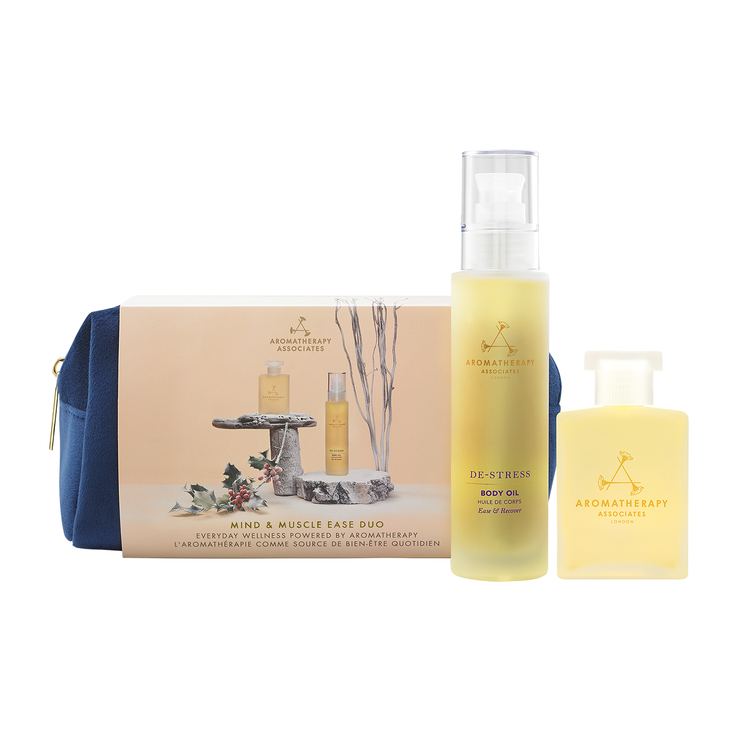 心と体に癒しを。「マインド & マッスル イーズ デュオ」で至福のひとときを。 アロマセラピー アソシエイツから、心と筋肉の緊張を和らげる特別なギフトセットが登場しました。このセットには、デ・ストレス マインド バス & シャワー オイル(55ml)とデ・ストレス ボディ オイル(100ml)が含まれており、頭からつま先までのリラクゼーションを提供します。